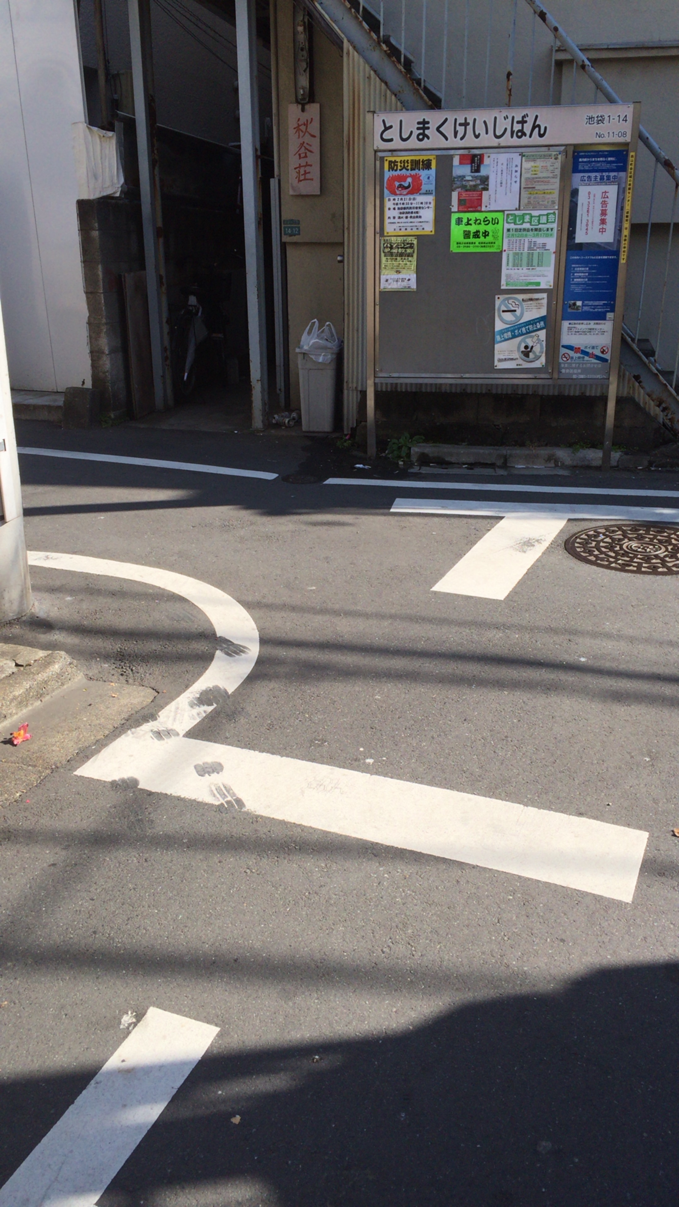 6.突き当りに掲示板があるのでそこを左折します。