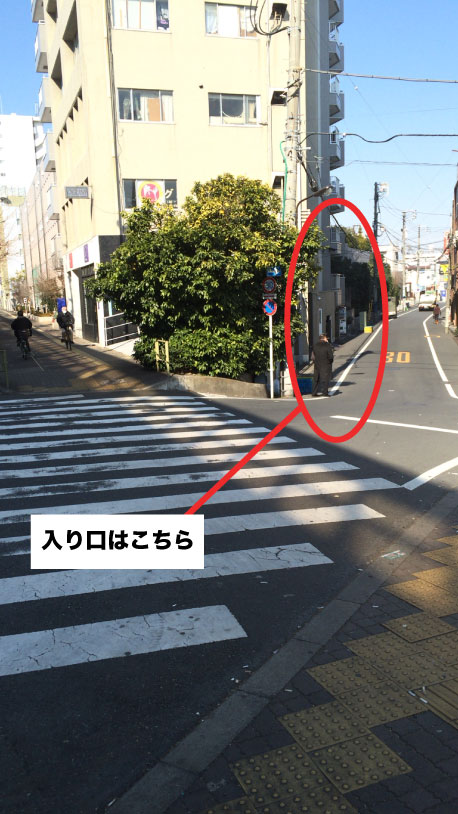 5.向かい側にあるリフォーム屋さんの隣の細い道を右に入ります。